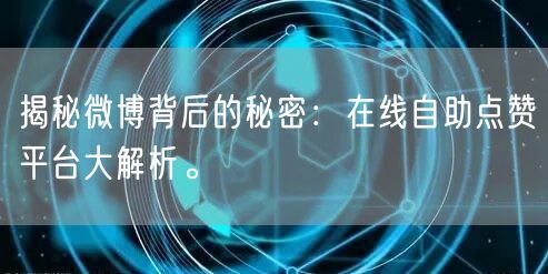 微博作为社交媒体的重要平台,吸引了众多用户分享生活点滴。在这个信息爆炸的时代,如何让自己的微博内容脱颖而出,成为每个用户关注的焦点。一些在线自助点赞平台应运而生,它们背后究竟隐藏着怎样的秘密?本文将为您深度解析。